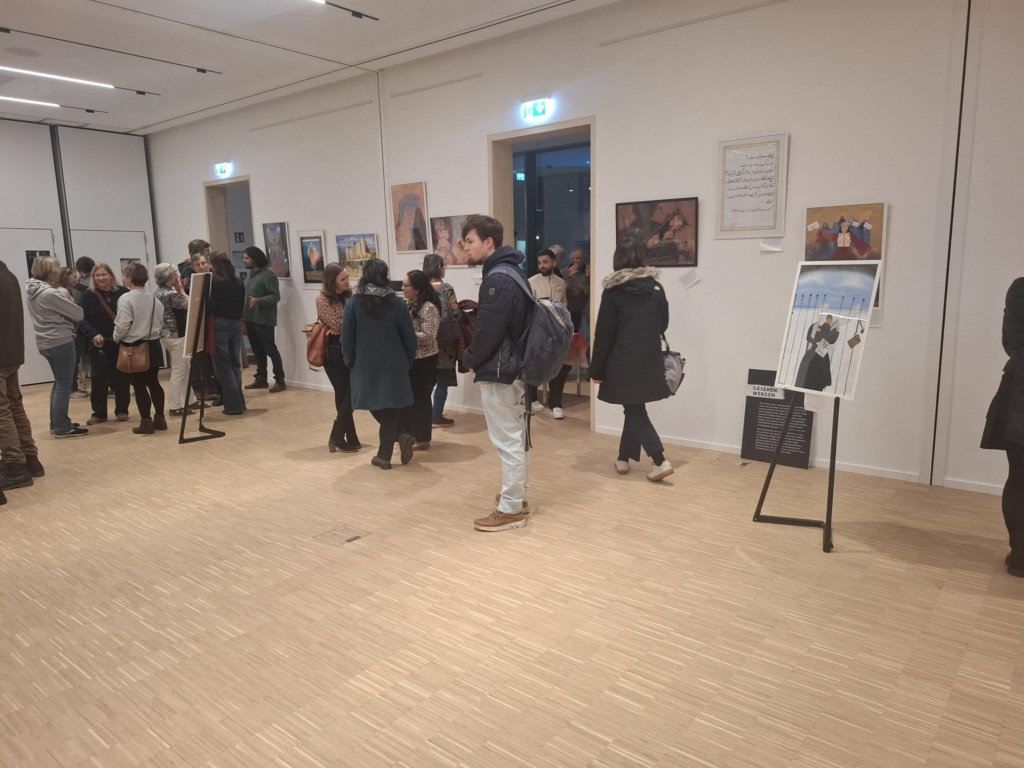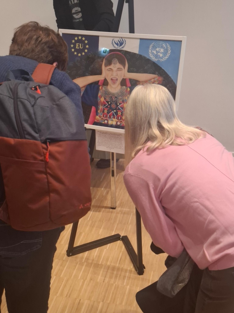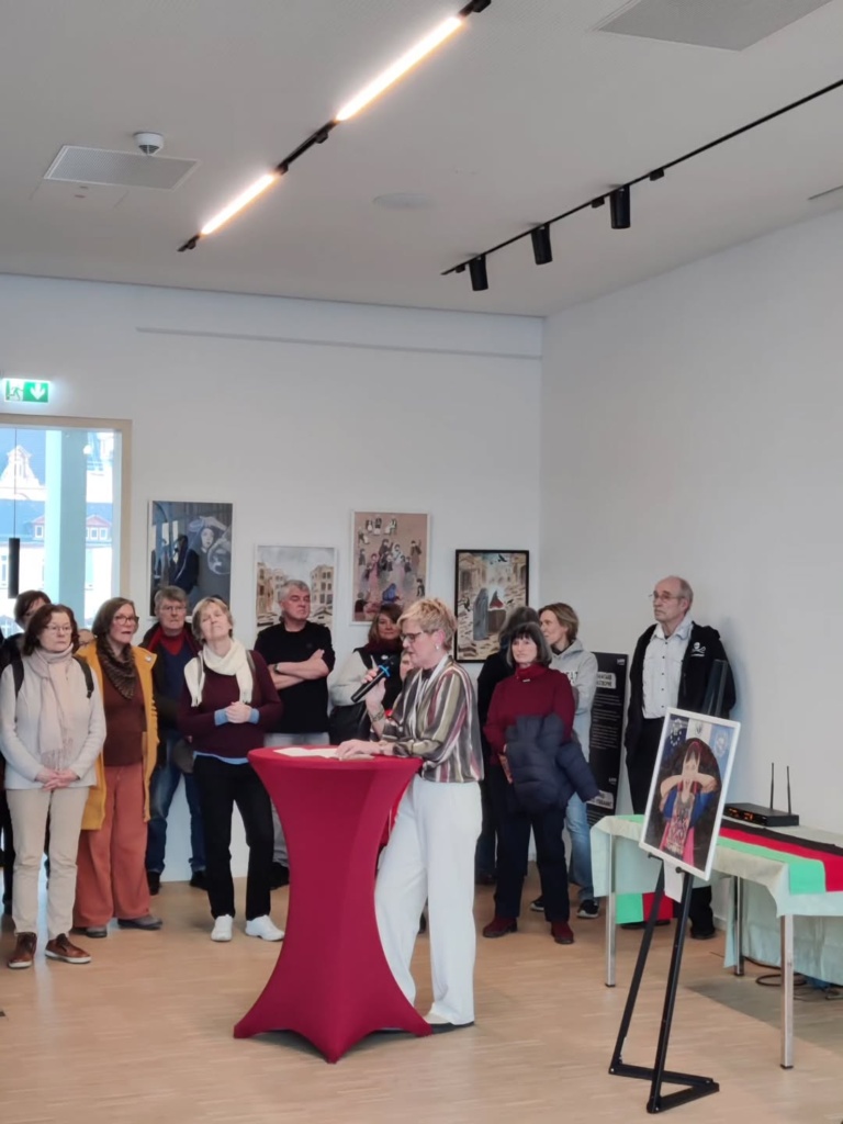 Besonders bewegend war der Beitrag einer afghanischen Frau, die eindrücklich von der Lebenssituation für Frauen in Afghanistan berichtete: Die Werke der Ausstellung wurden „in Dunkelheit geschaffen, um Zeugnis zu geben“ für Unterdrückung und Leid. Die Ausstellung sei „Plattform des Widerstands, Fenster der Hoffnung und die Möglichkeit zu sagen: Wir sind noch da!“
